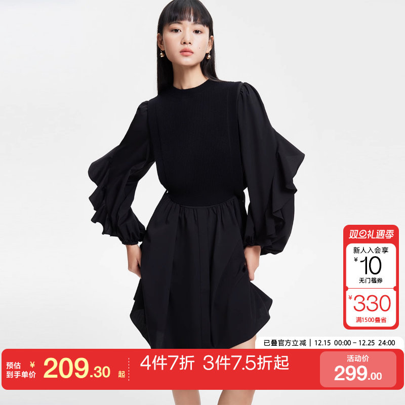 Vero Moda奥莱连衣裙秋季新款可拆卸背心宽松灯笼袖中裙子流行