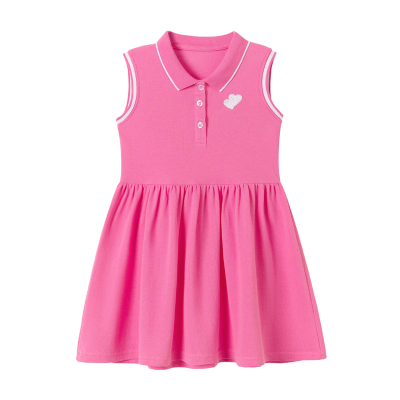 粉色无袖连衣裙女童夏季爱心花苞翻领背心裙宝宝中裙小童运动裙子