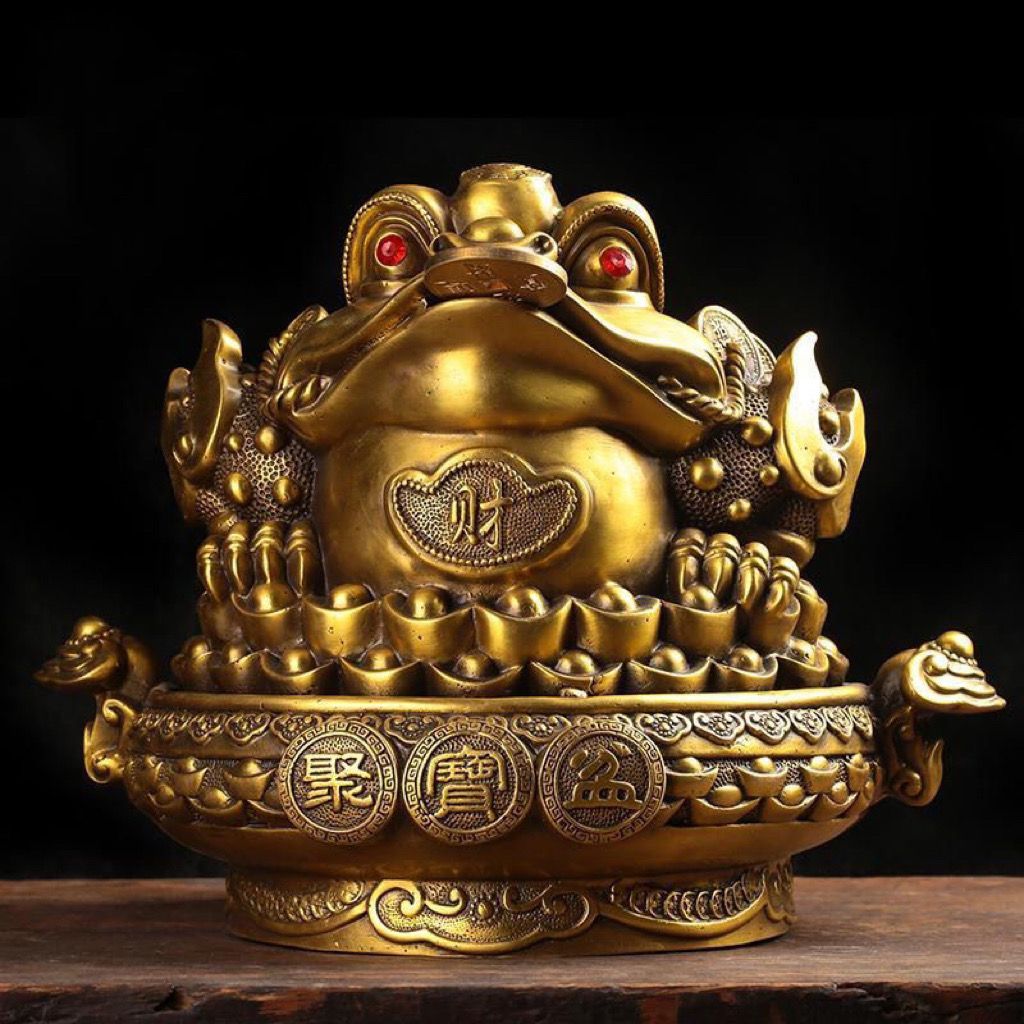 纯铜聚宝盆招财三足金蟾摆件铜三脚蟾蜍真铜客厅乔迁店铺开业送礼