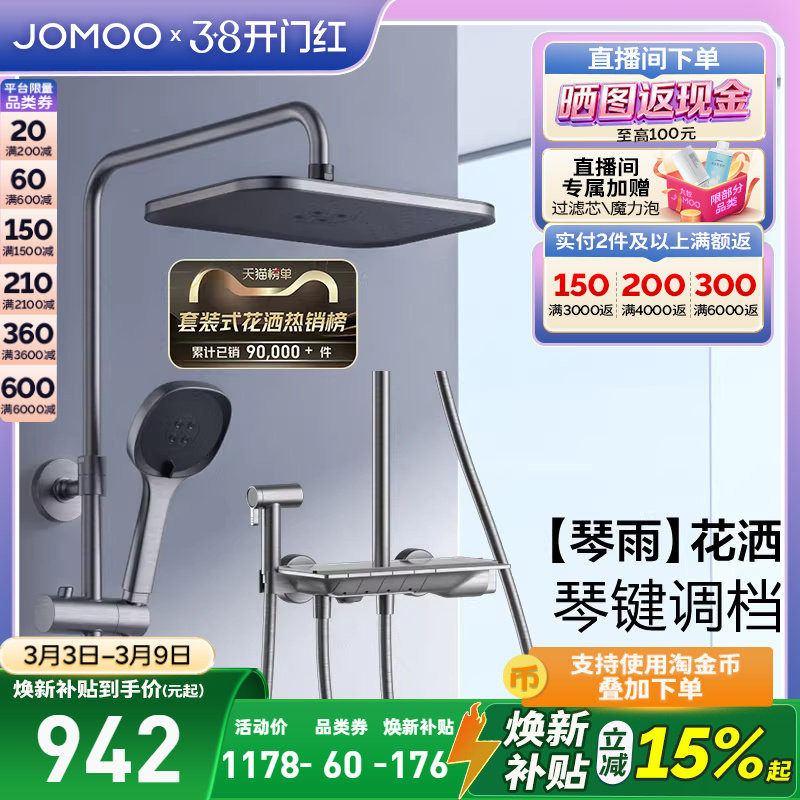 【焕新补贴15%】九牧琴雨钢琴按键花洒卫生间增压淋浴花洒套装