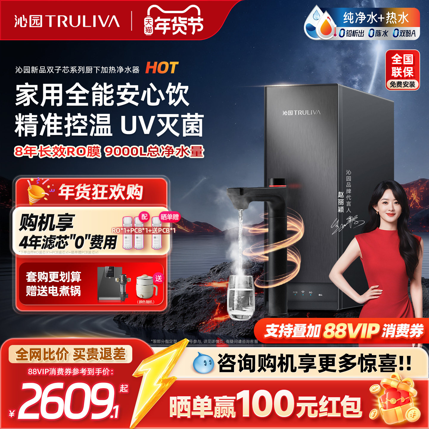 苏泊尔真鲜活净水器家用直饮过滤器双出水ro反渗透官方正品MR800