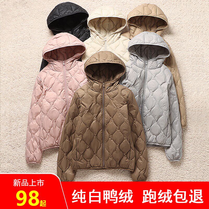 清货 冬季新款轻薄羽绒服女短款连帽超轻保暖白鸭绒外套超薄大童