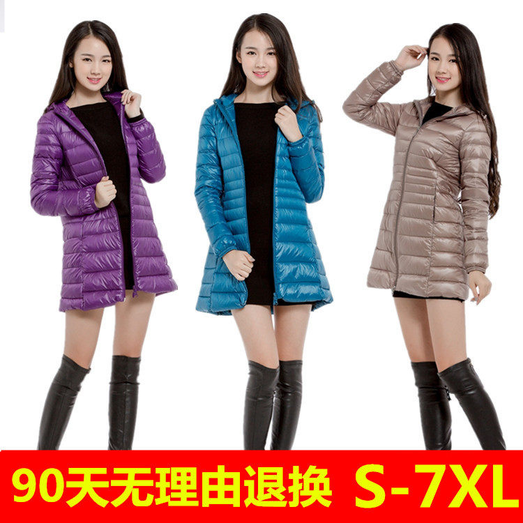 大码超薄羽绒服女妈妈轻薄中长款连帽白鸭绒超轻便修身显瘦中老年