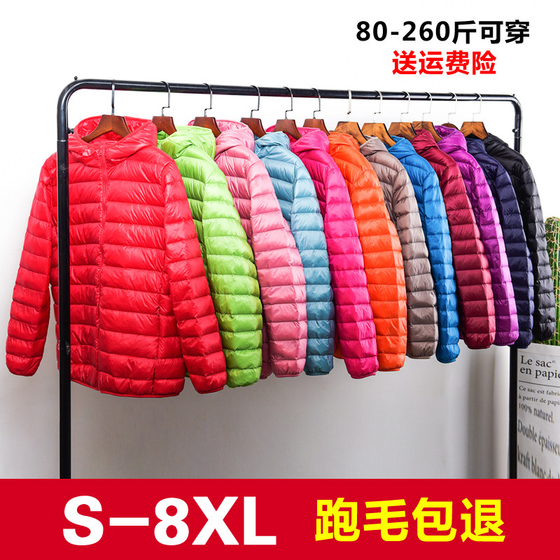 超薄款加肥加大码轻薄羽绒服女200斤胖mm短款轻便超轻薄连帽女装