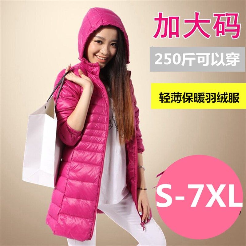 冬季轻薄羽绒服女加肥加大码胖mm200斤中长款妈妈装超轻便超薄款