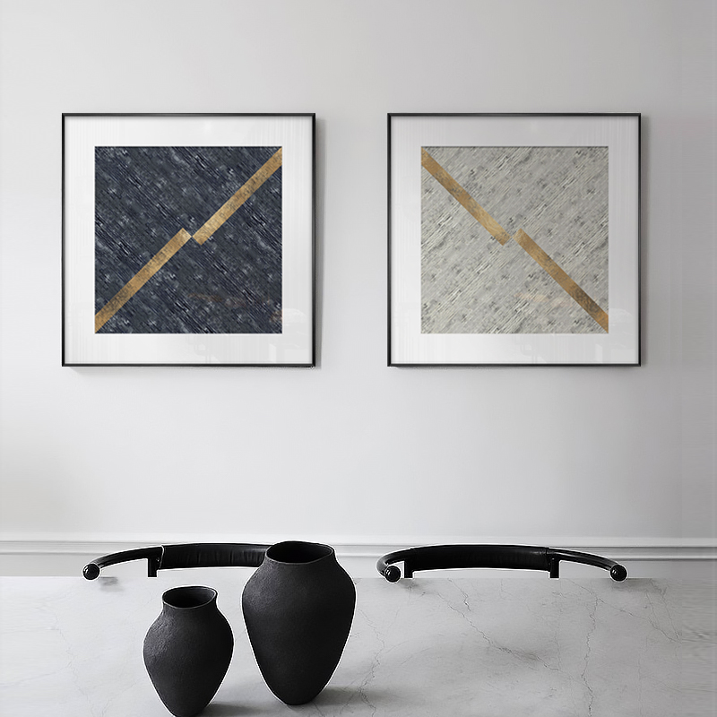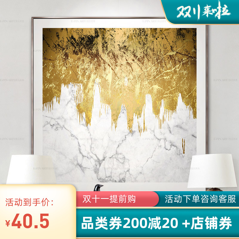 金色抽象画轻奢客厅沙发背景墙装饰画几何玄关样板房挂画正方形画
