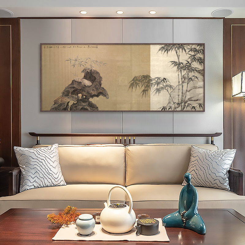 新中式竹子装饰画软装样板房挂画别墅客厅沙发背景墙大幅尺寸壁画