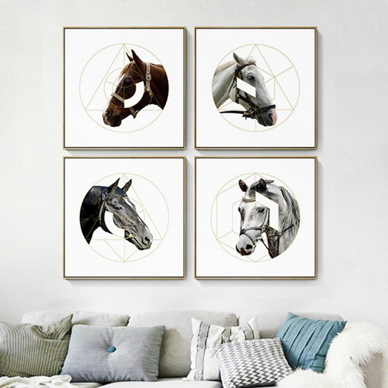 现代简约酒店样板房挂画客厅装饰画几何马头书房玄关壁画墙画四联