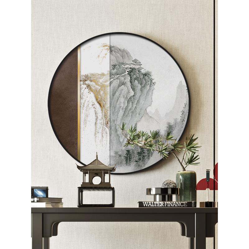 新中式玄关样板房挂画轻奢圆形客厅装饰画走廊入户壁画入门墙墙画