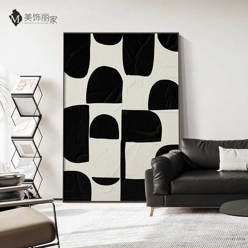 黑白几何块艺术抽象客厅装饰画沙发背景墙壁画轻奢酒店样板房挂画
