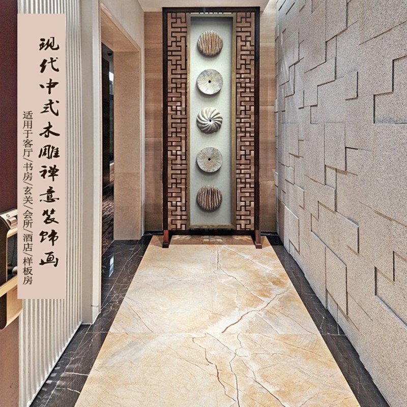 新中式禅意装饰画客厅玄关走廊木质壁画竖版酒店样板房挂画长方形