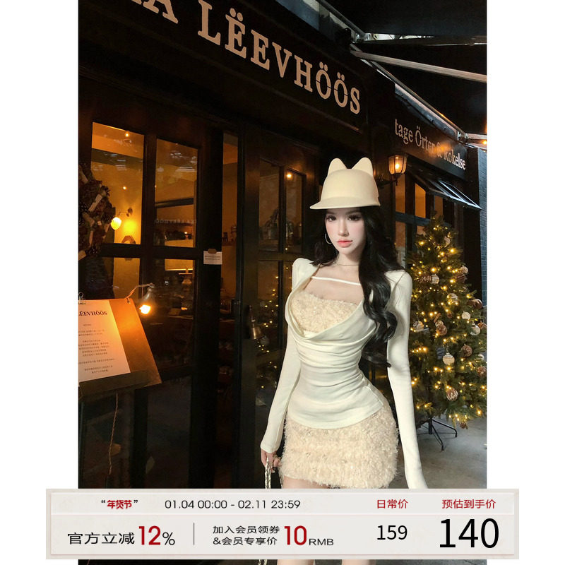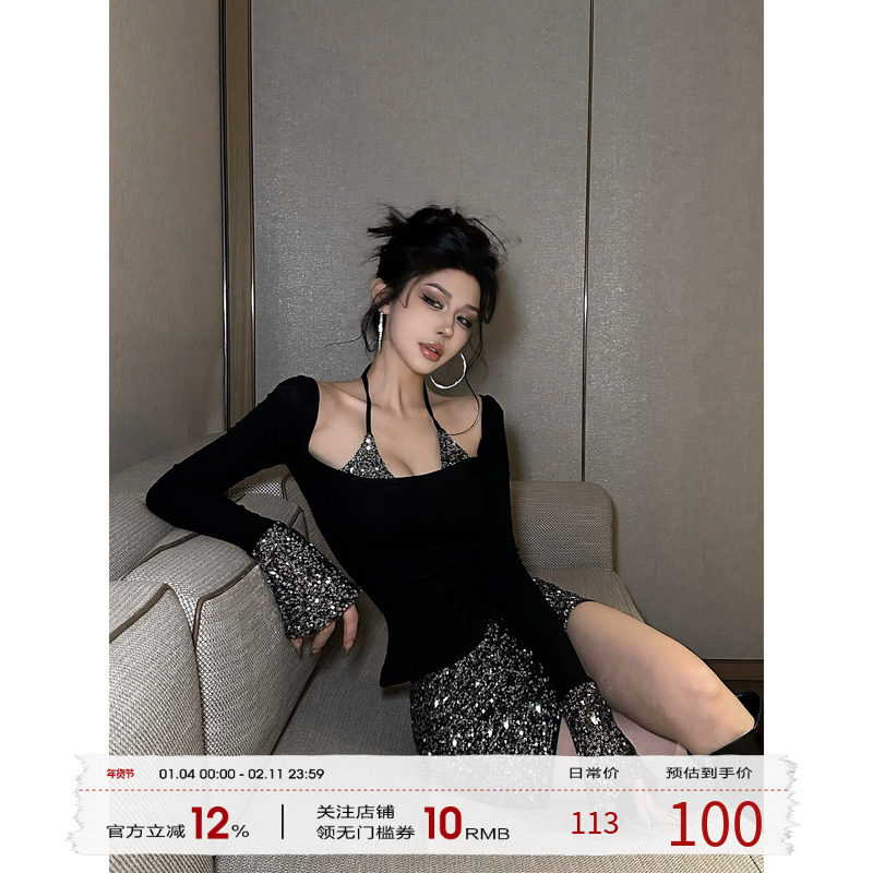 牛了牛了 御姐穿搭套装女2025冬新款正反两穿露肩上衣短裙两件套