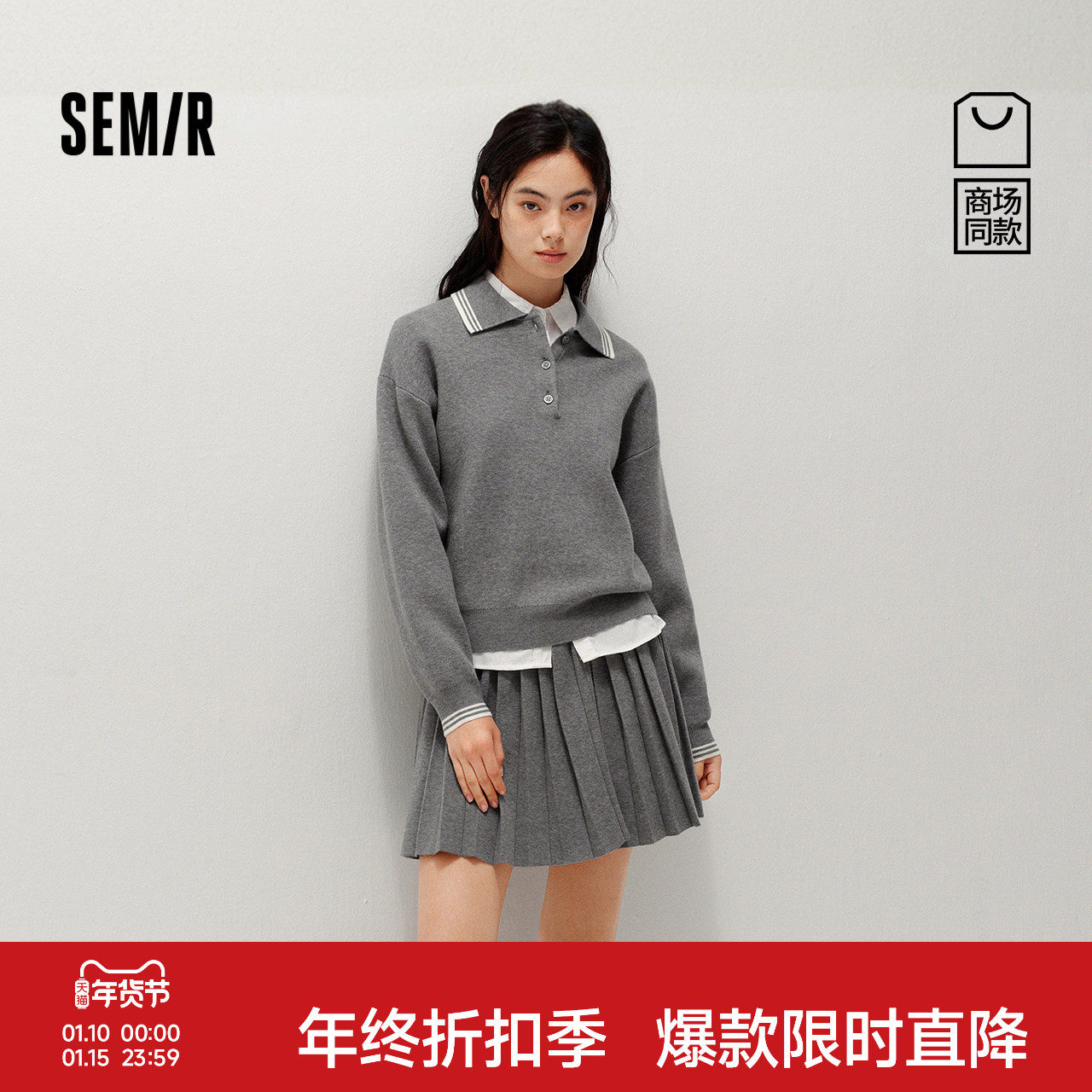 商场同款|森马套装女冬撞色polo衫百褶短裙2025新款学院风两件套