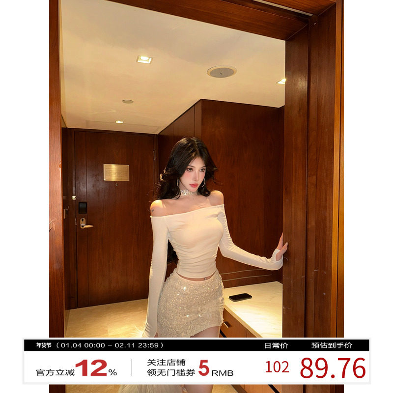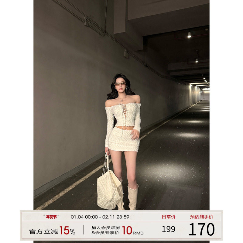 灰尘邓邓 辣妹针织套装女2025冬季新款一字肩性感上衣短裙两件套