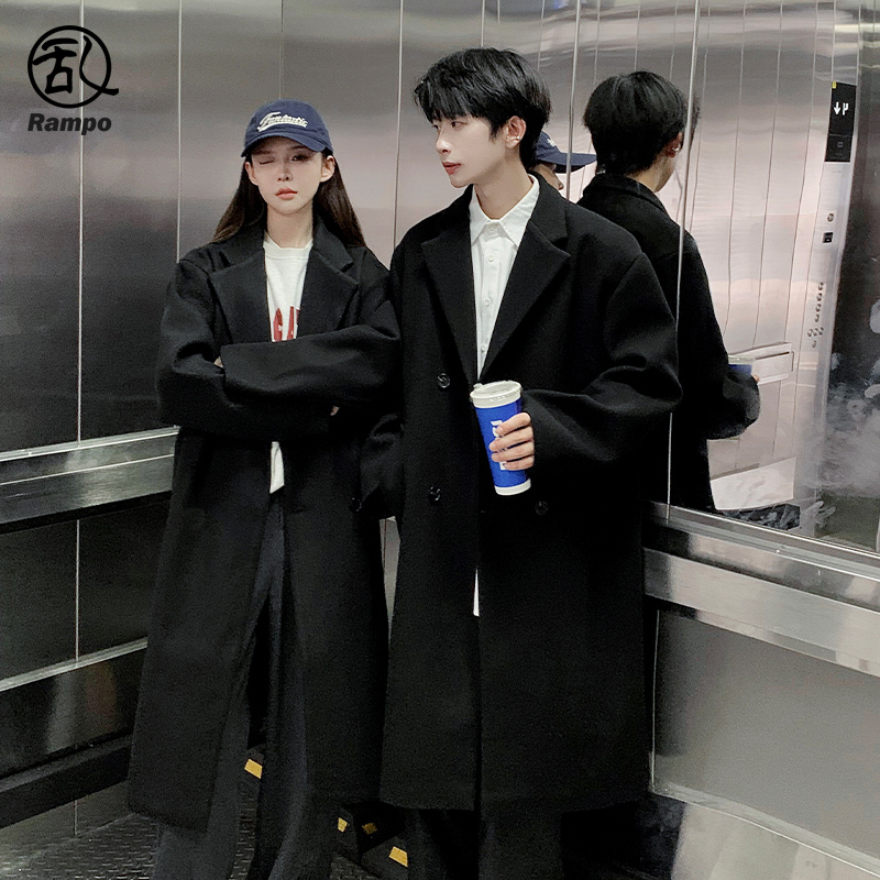 冬季新款毛呢大衣男中长款加厚保暖过膝宽松英伦街头情侣外套风衣