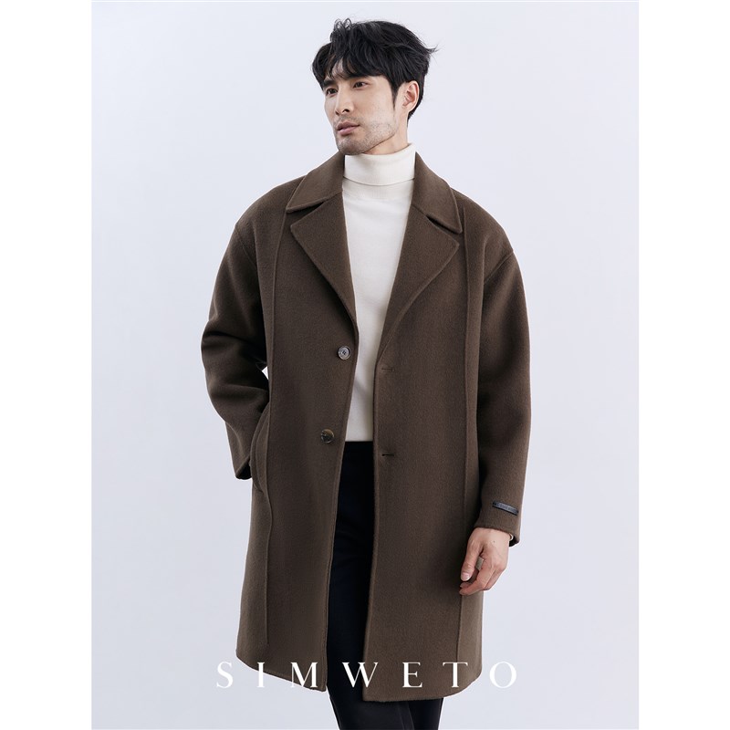 25冬季男装全羊毛双面毛呢大衣男中长款加厚设计感宽松西装领外套