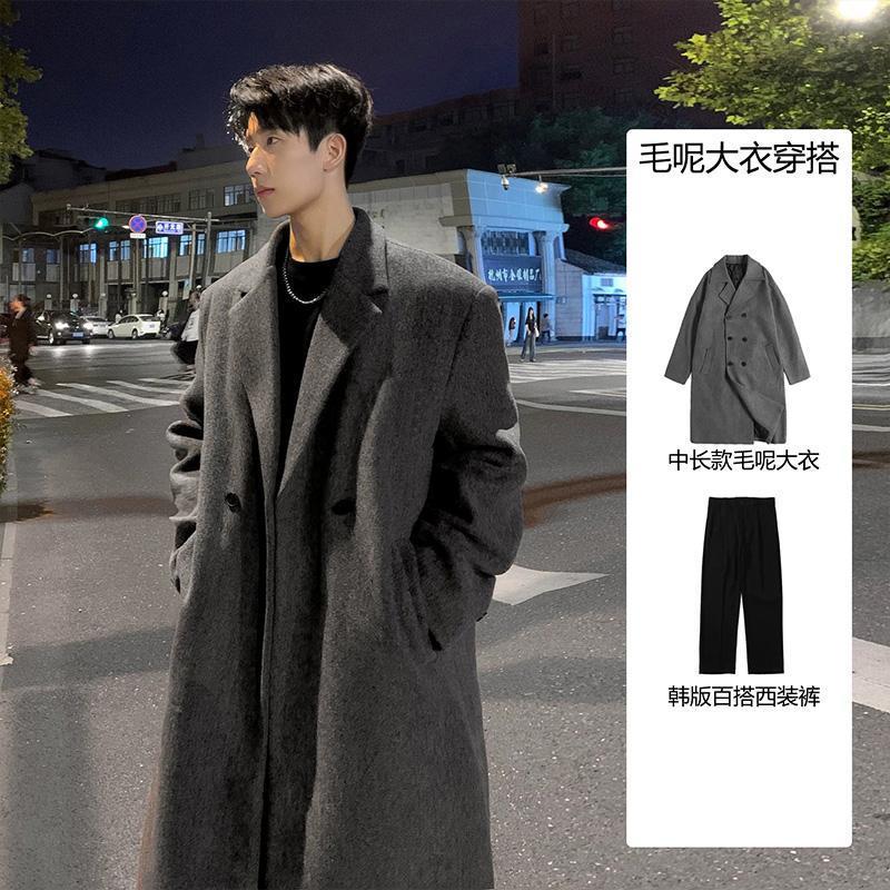 韩版毛呢大衣男中长款加厚过膝休闲潮流宽松高级冬季风衣呢子外套