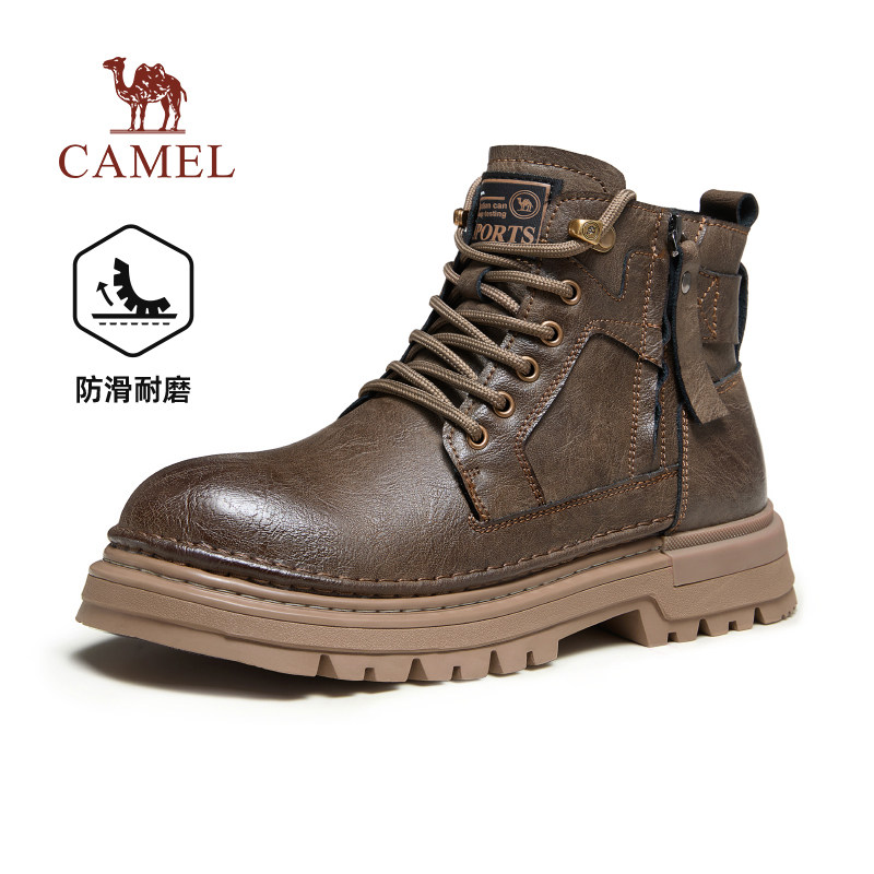 骆驼马丁靴男鞋美式工装靴户外男款休闲中高帮英伦风复古时装靴子