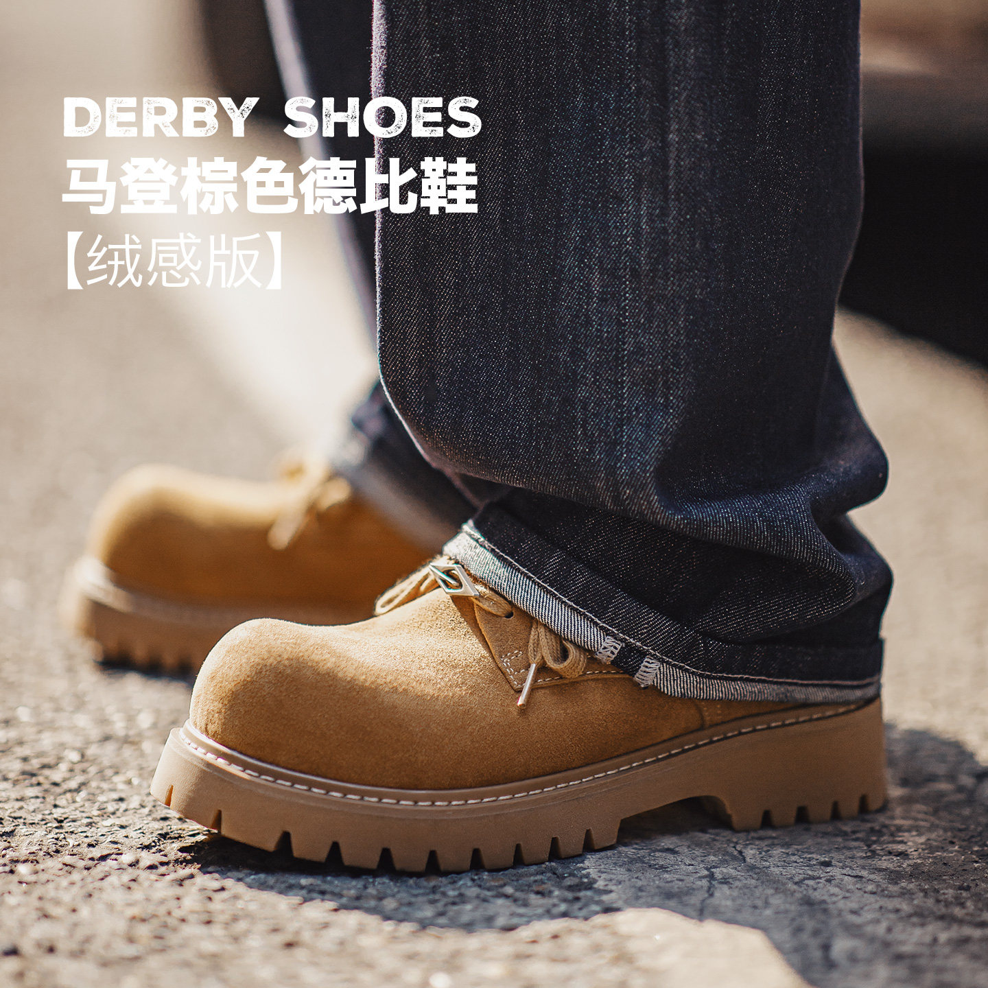 马丁靴男款英伦风春季高帮内增高工装男鞋防水中帮靴子新款大黄靴