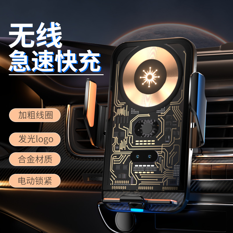 超值电动感应朋克金属车载无线充电手机支架内置电池磁吸超极快充