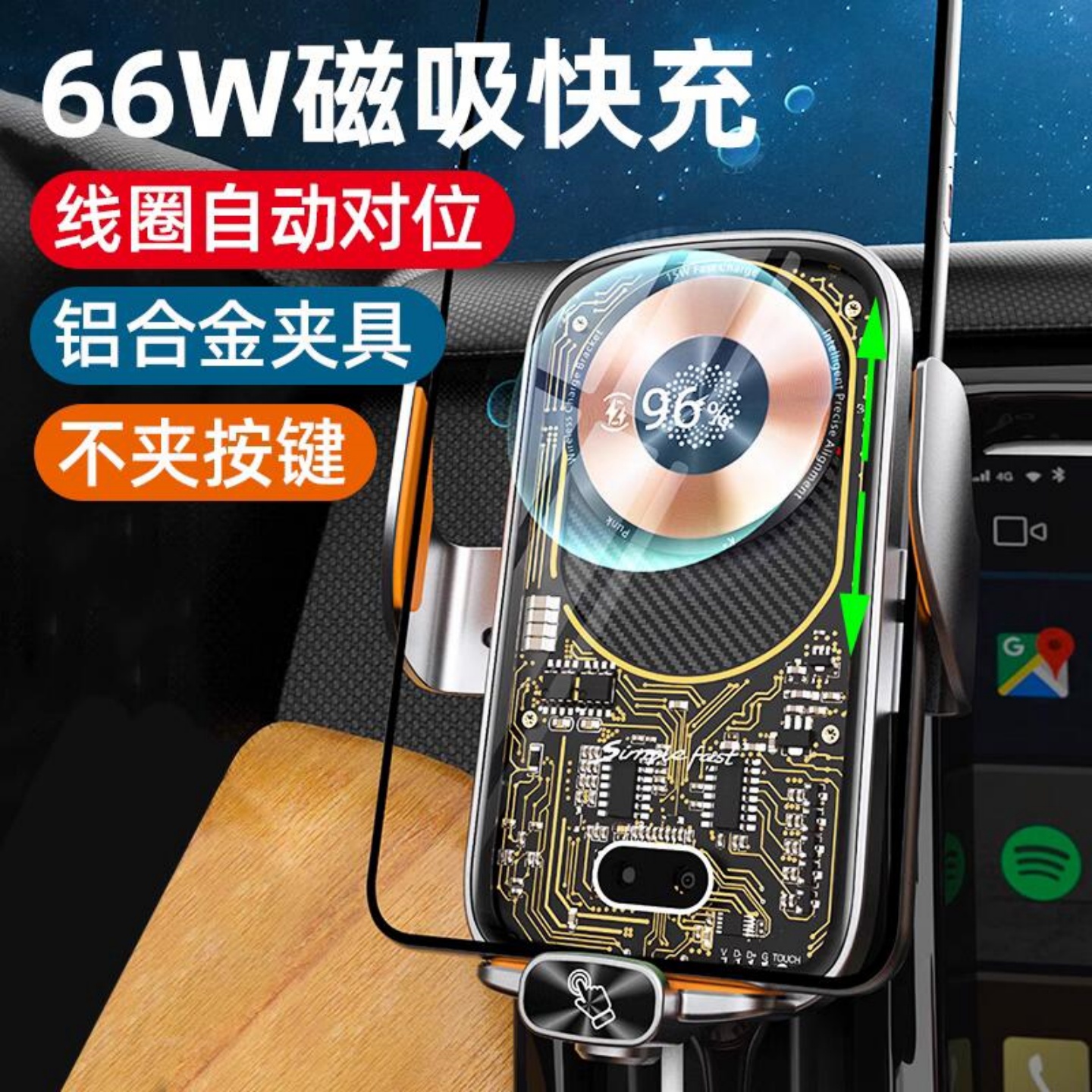 车载无线充电手机支架66W磁吸快充15W无线充电汽车出风口电动支架