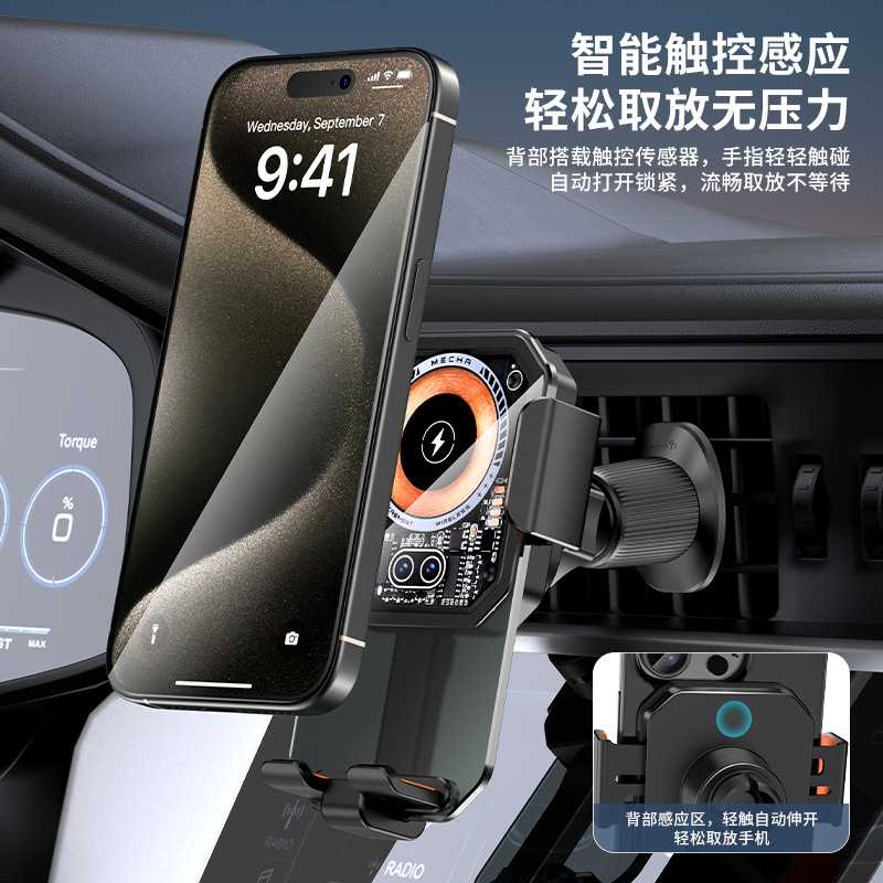 2025新款车载无线充电手机支架 15W感应开合 汽车导航架汽车用品