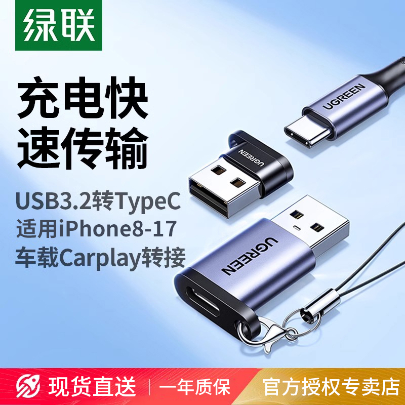 绿联usb转typec接口适用苹果转接头充电iPhone17/16数据线15手机otg电脑c转usb平板充电宝车载carplay转换器