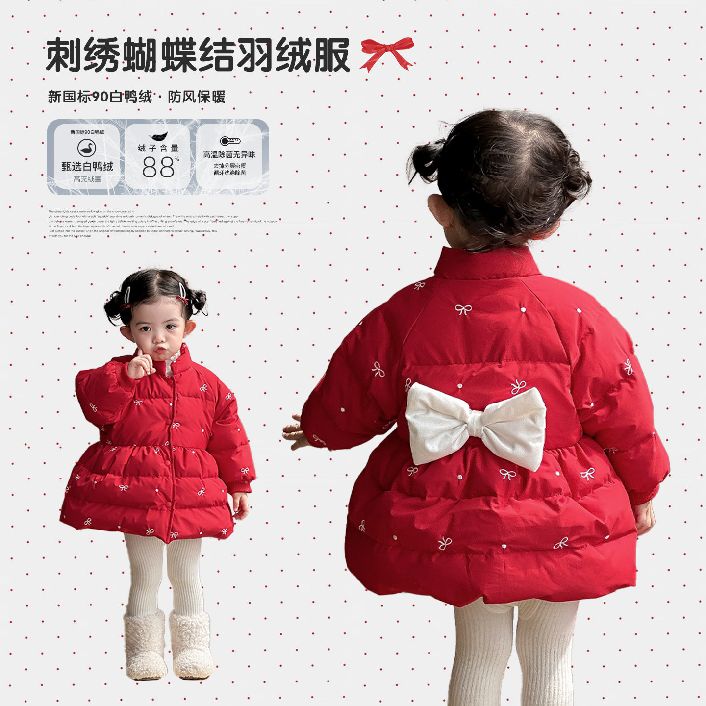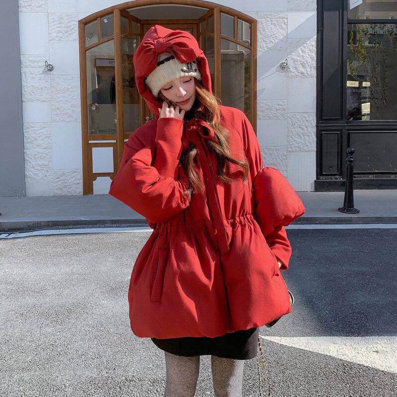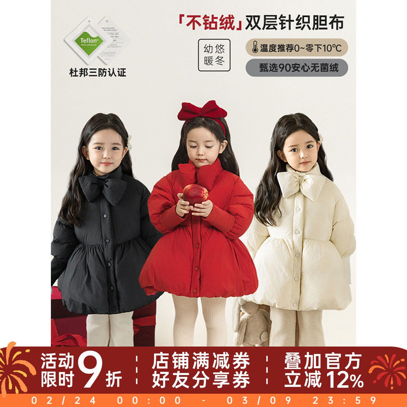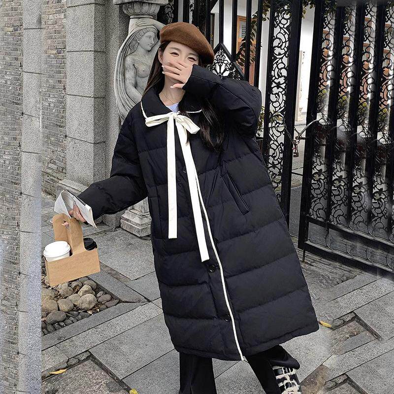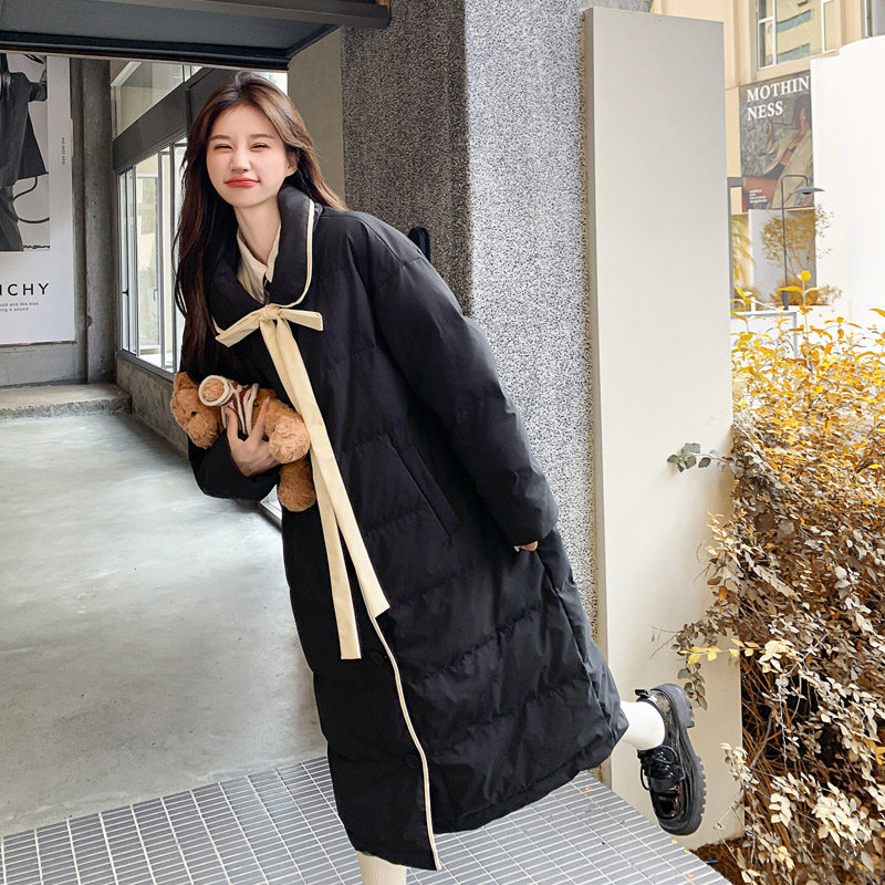 - 蝴蝶结羽绒服女中长款