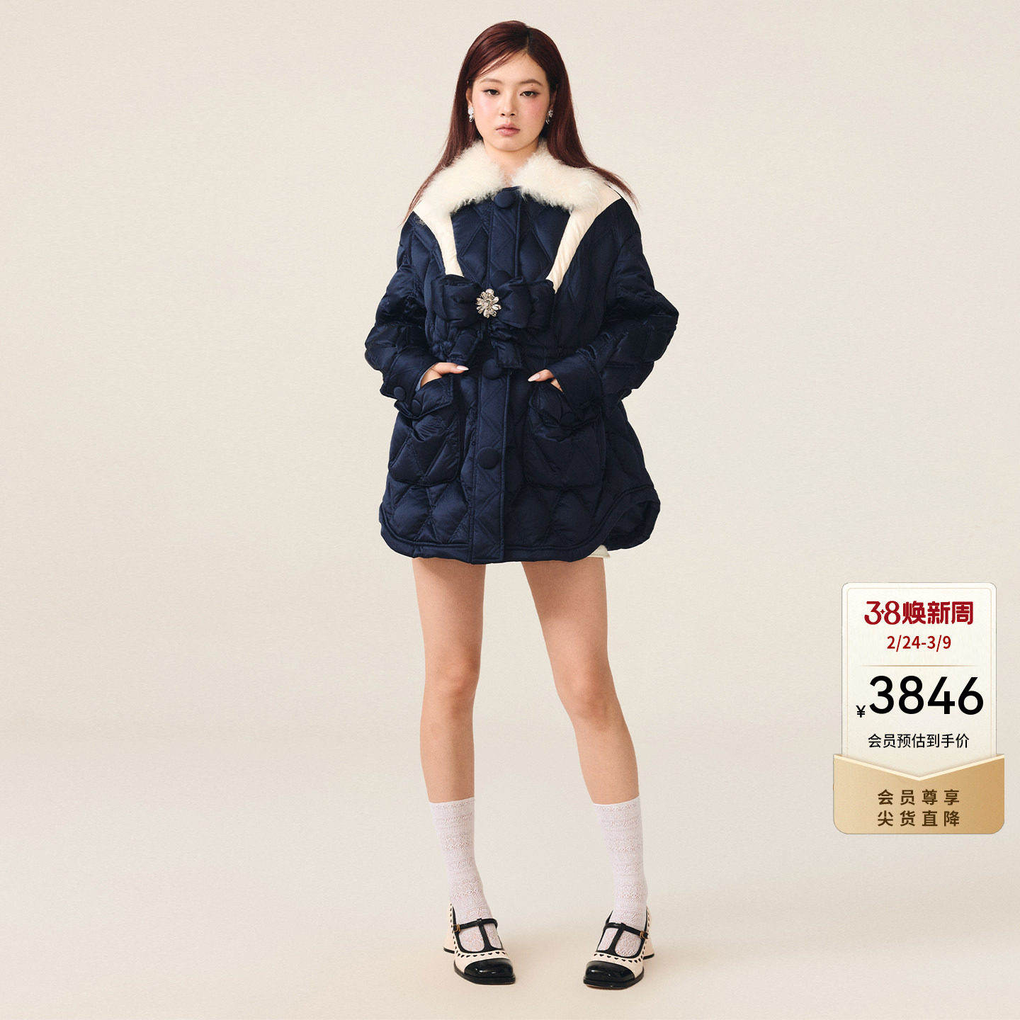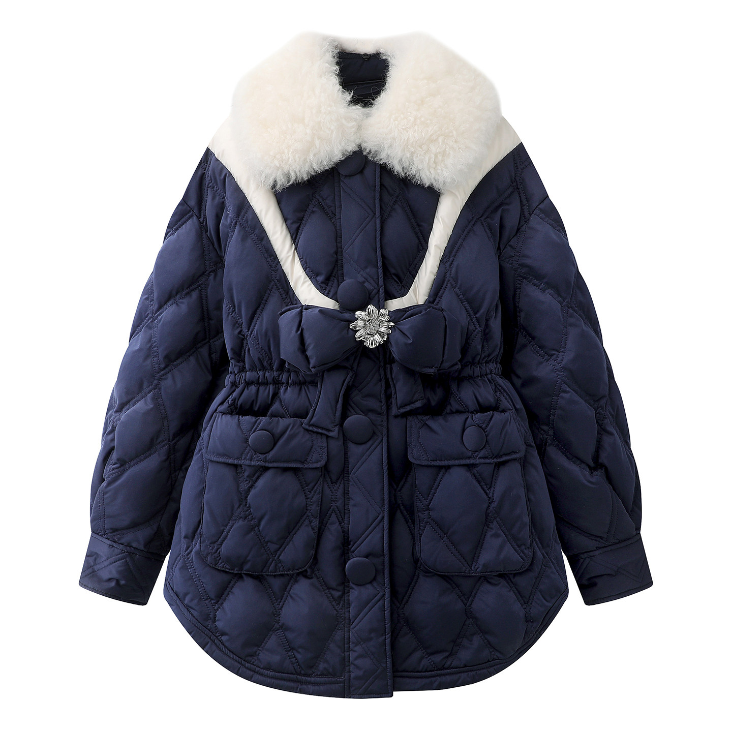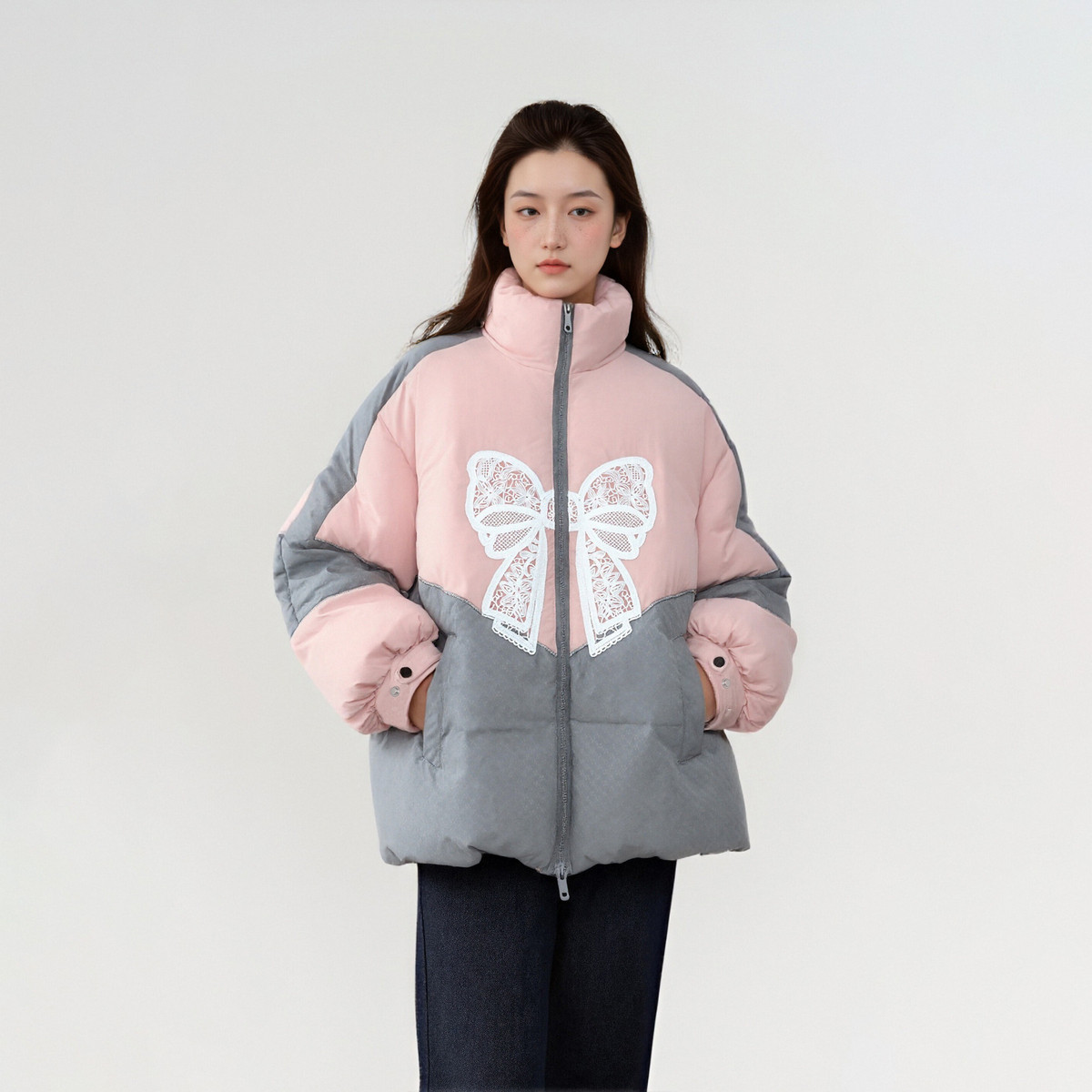 - 蝴蝶结羽绒服女中长款