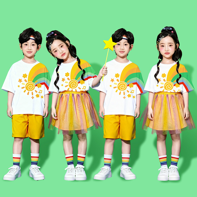 儿童彩虹啦啦队演出服多巴胺幼儿园表演服装小学生运动会合唱班服