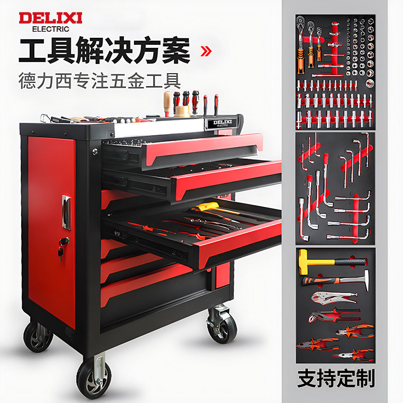 德力西汽修工具车套装全套工具柜带内村移动小推车多功能工具箱车
