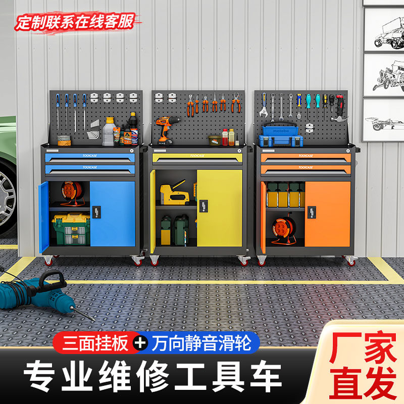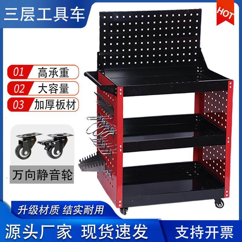 汽修工具车多功能车间移动收纳箱架子带刹车挂板款维修工具手推车