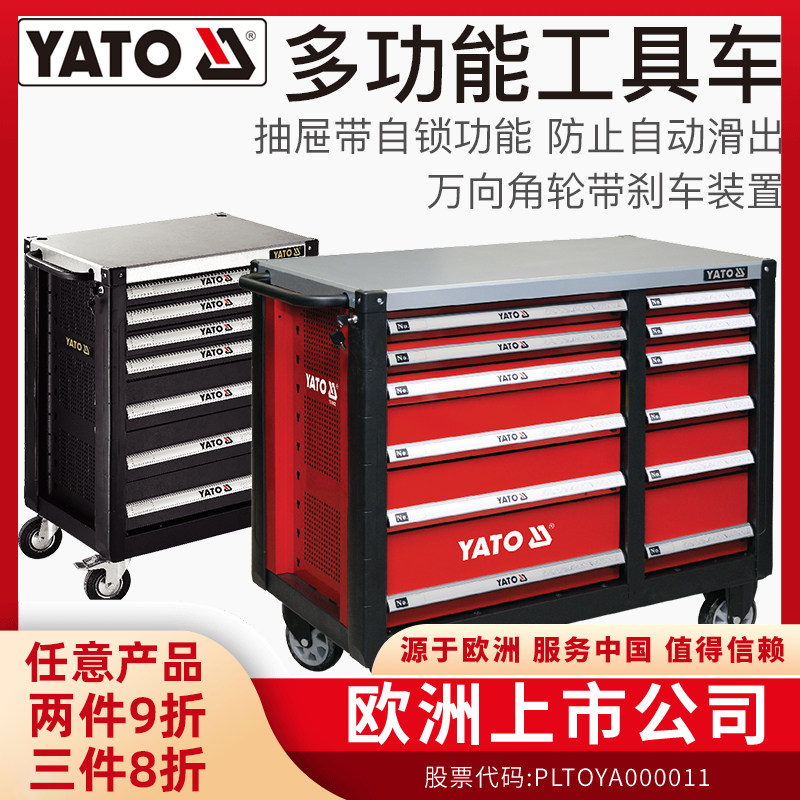 YATO汽修工具车抽屉五金维修手推箱多功能移动重型工具柜子车间用