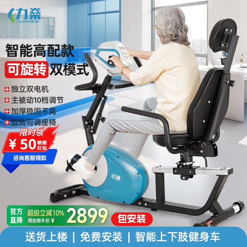 卧式健身车家用上下肢两用脚踏车老人电动康复机室内静音运动单车