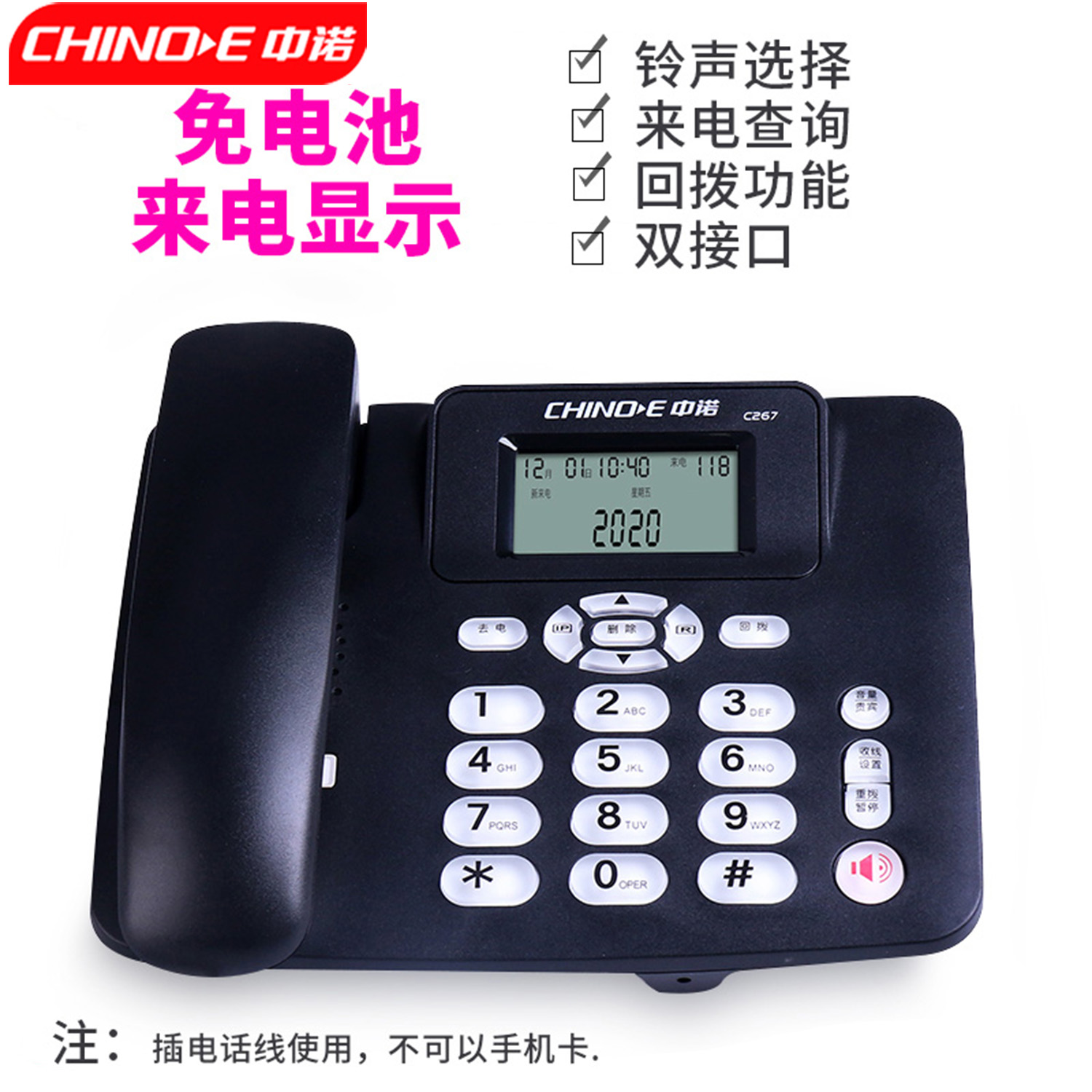 中诺C267有线坐式固定电话机坐机 家用办公座机来电显示免电池