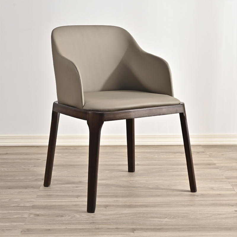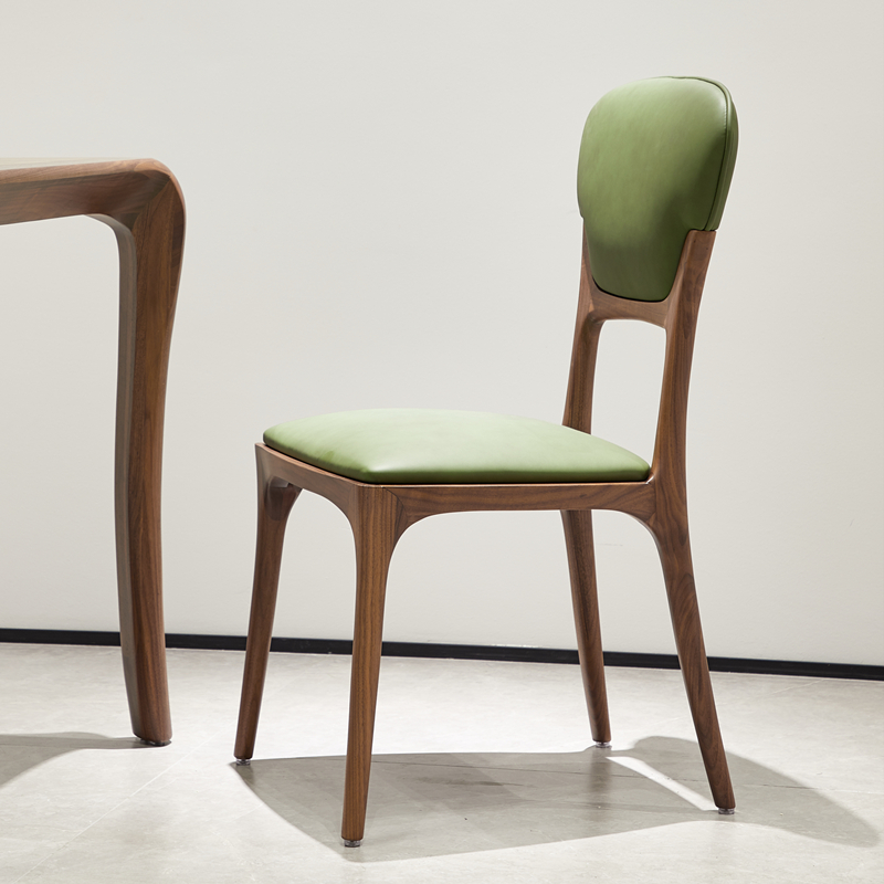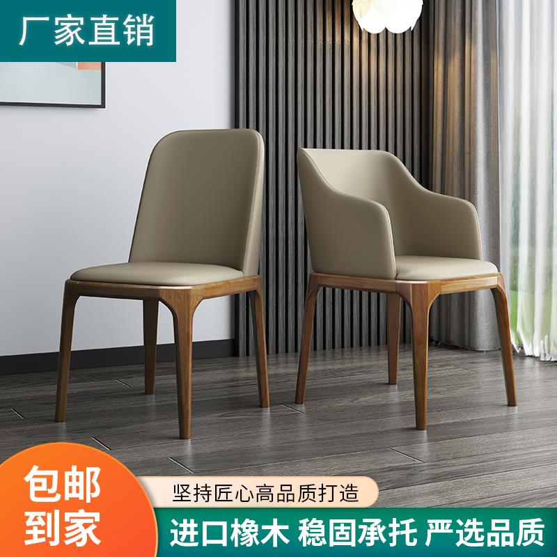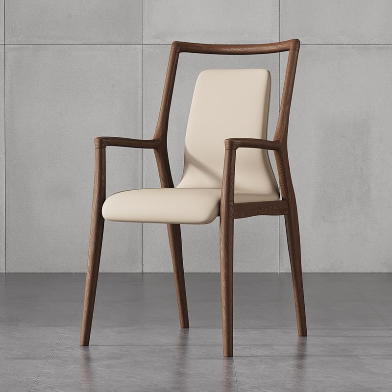北欧实木餐椅家用意式轻奢真皮椅子带扶手软靠书椅黑胡桃木靠背椅