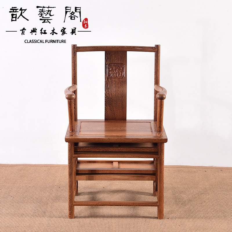 中式实木椅子带扶手 多功能折叠楼梯用靠背椅南宫椅 鸡翅木官帽椅