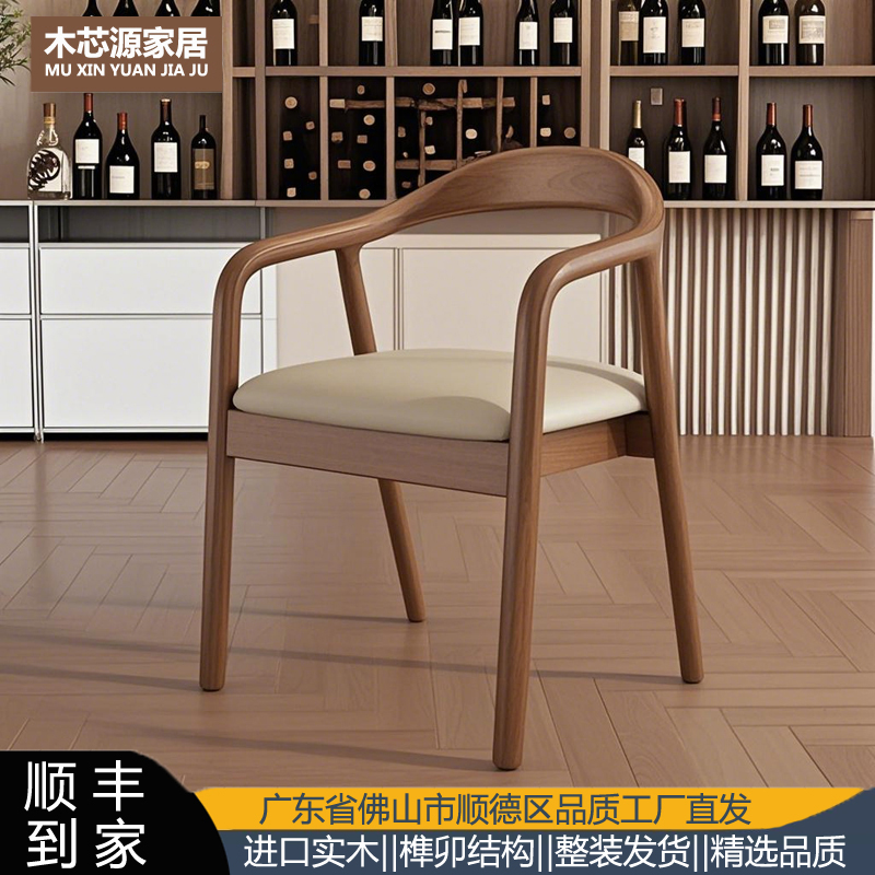 新中式实木餐椅家用北欧餐厅靠背椅子咖啡椅茶椅带扶手白蜡木整装