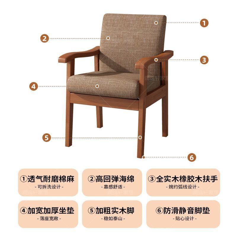实木沙发椅带扶手电脑椅书桌椅家用阳台靠背椅麻将椅子休闲老人椅