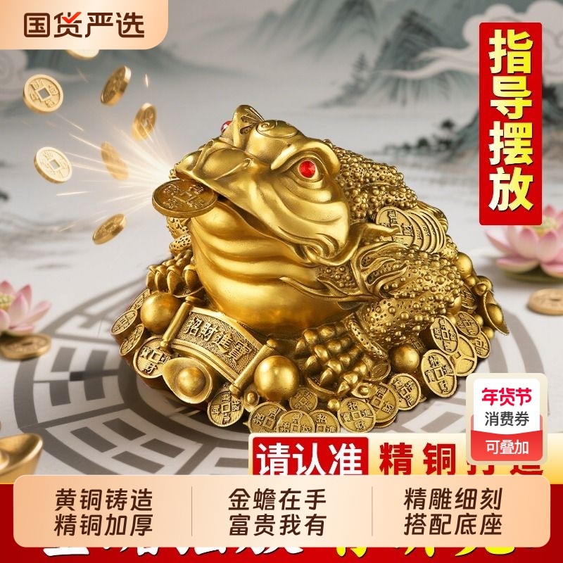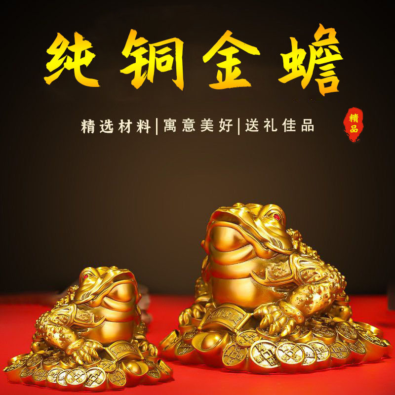 黄铜三足金蟾摆件三脚金蟾蜍客厅桌面店铺酒柜前台开业礼品装饰品