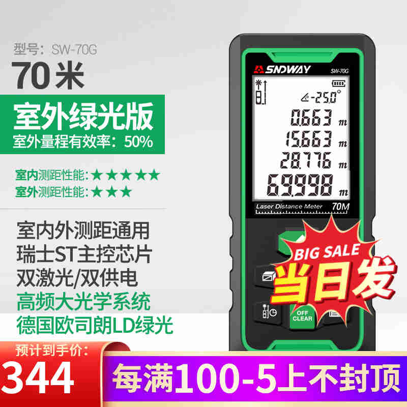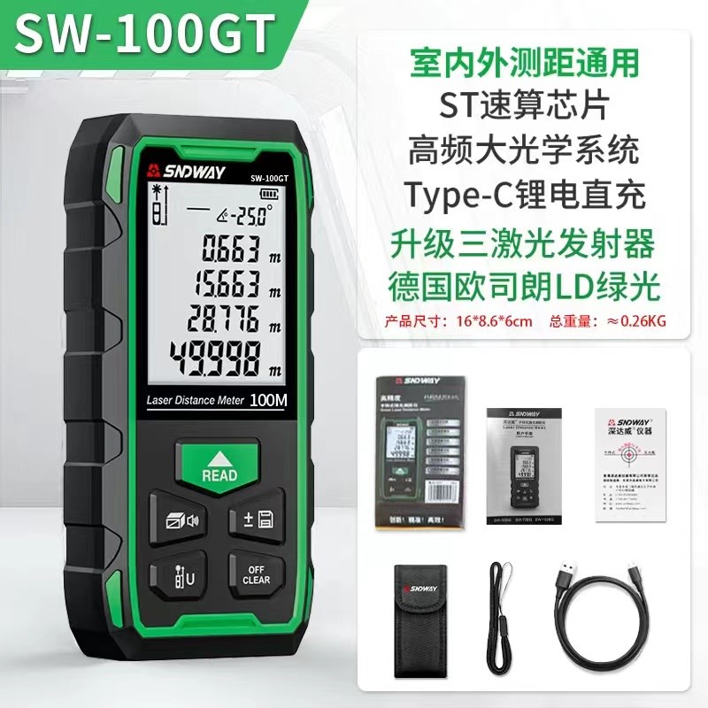 深达威SW100G激光测距仪 室内室外测距仪 绿光电子尺激光尺量房仪