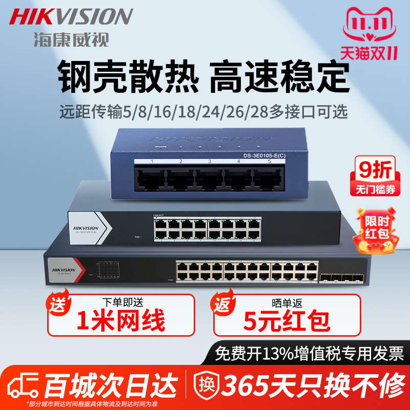 海康威视交换机百兆千兆4口5口8口16口18口24口26口48口52口网络分流器交换器国标48V工业商用监控网线分线器