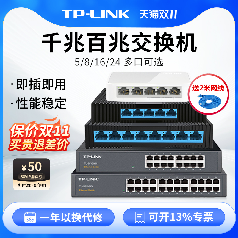 普联tp-link千兆交换机5口8口16口24口百兆八口分线器网络集线器家用宿舍企业工业网线监控转换机交换器