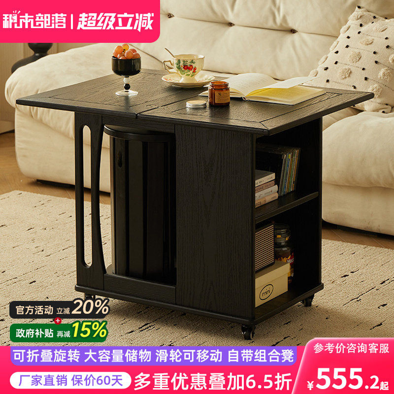 家用可移动边几折叠桌实木多功能茶桌客厅推车沙发边桌椅组合茶几
