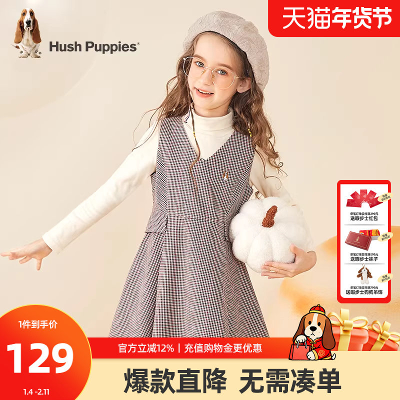 暇步士童装女童马甲裙春装新款中大童宝宝休闲百搭儿童格纹连衣裙
