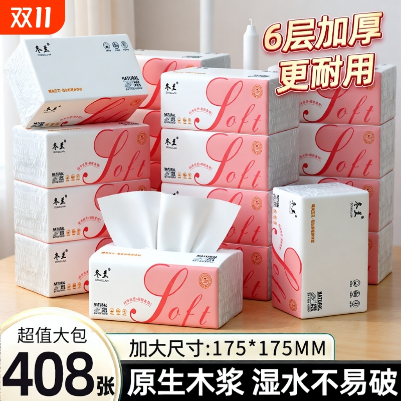 抽纸大包6层加厚家用实惠装整箱批发餐巾纸面巾纸卫生纸厕纸木浆