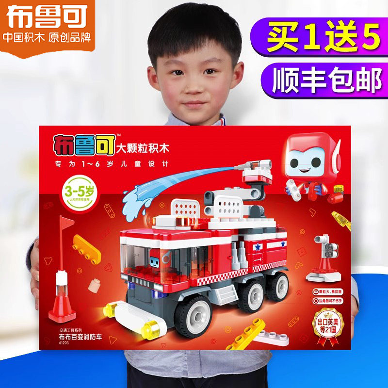 百变布鲁可拼装积木大颗粒布鲁克小队消防车玩具儿童男孩生日礼物