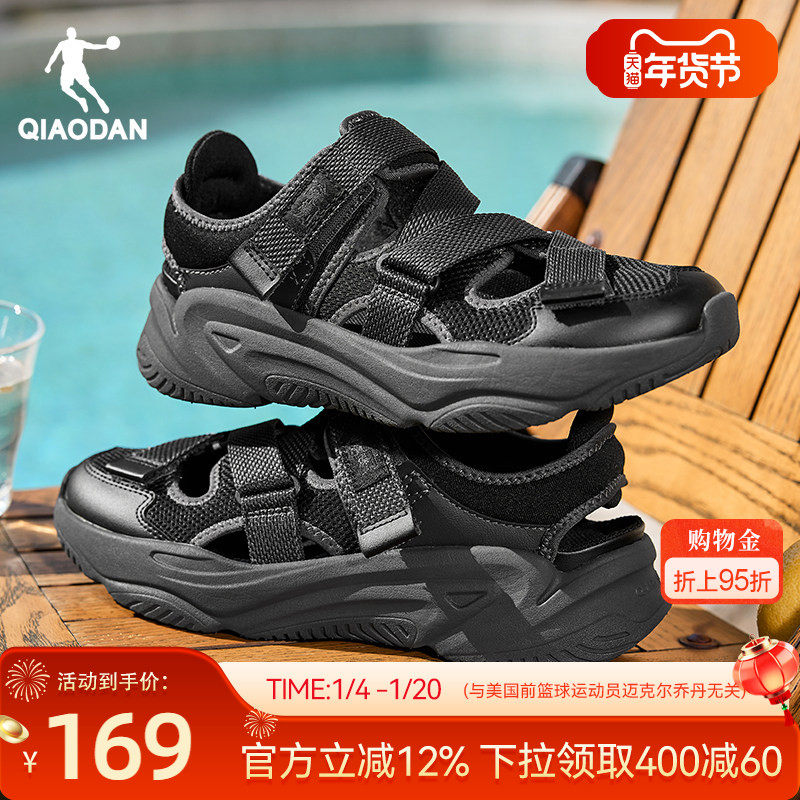 乔丹官方玛丽珍沙滩凉鞋男夏季新款黑色凉拖户外镂空透气休闲鞋子