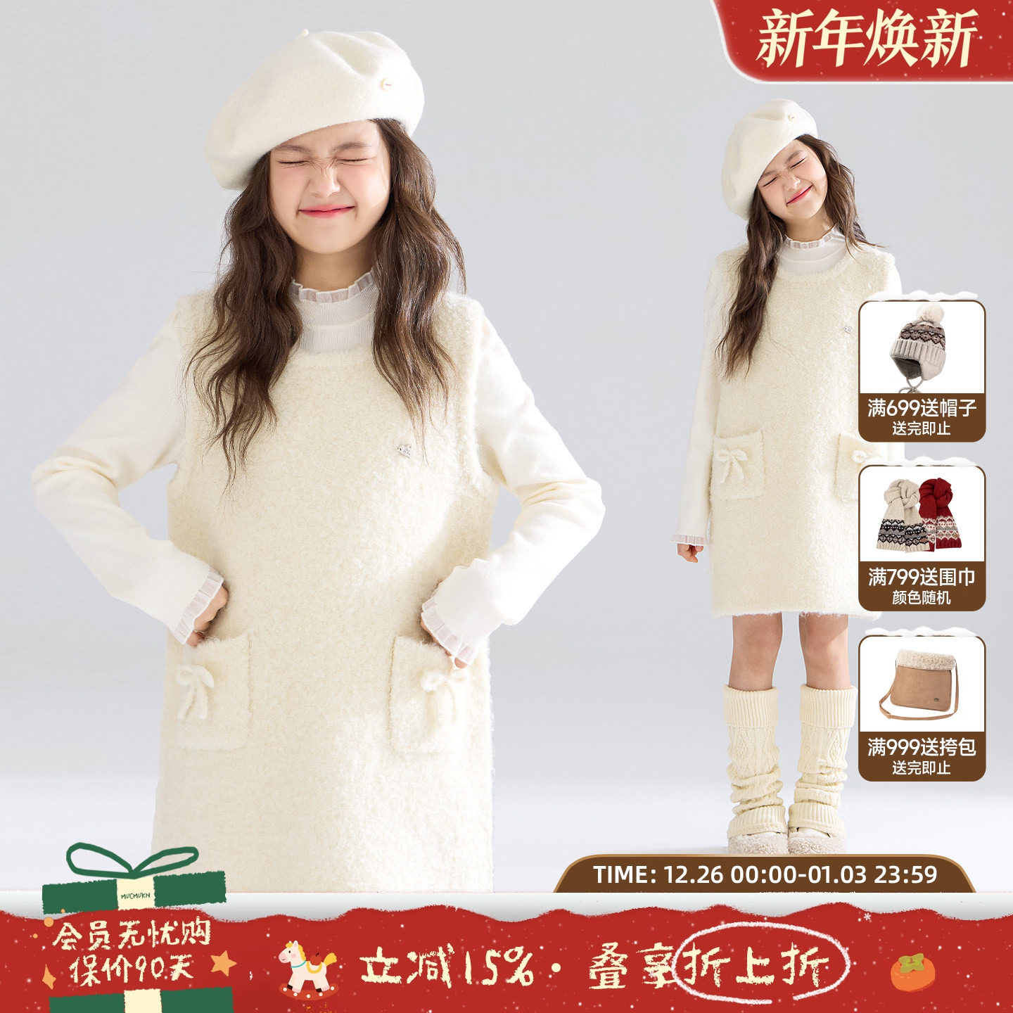 MUCMUKN【奶油小绵羊】软糯圈圈羊毛呢背心裙子连衣裙女童25冬新