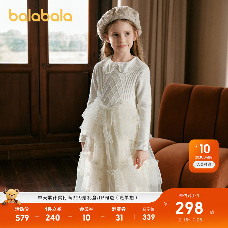 【premium】巴拉巴拉冬装羊毛针织拼接网纱女童连衣裙子梦幻甜美